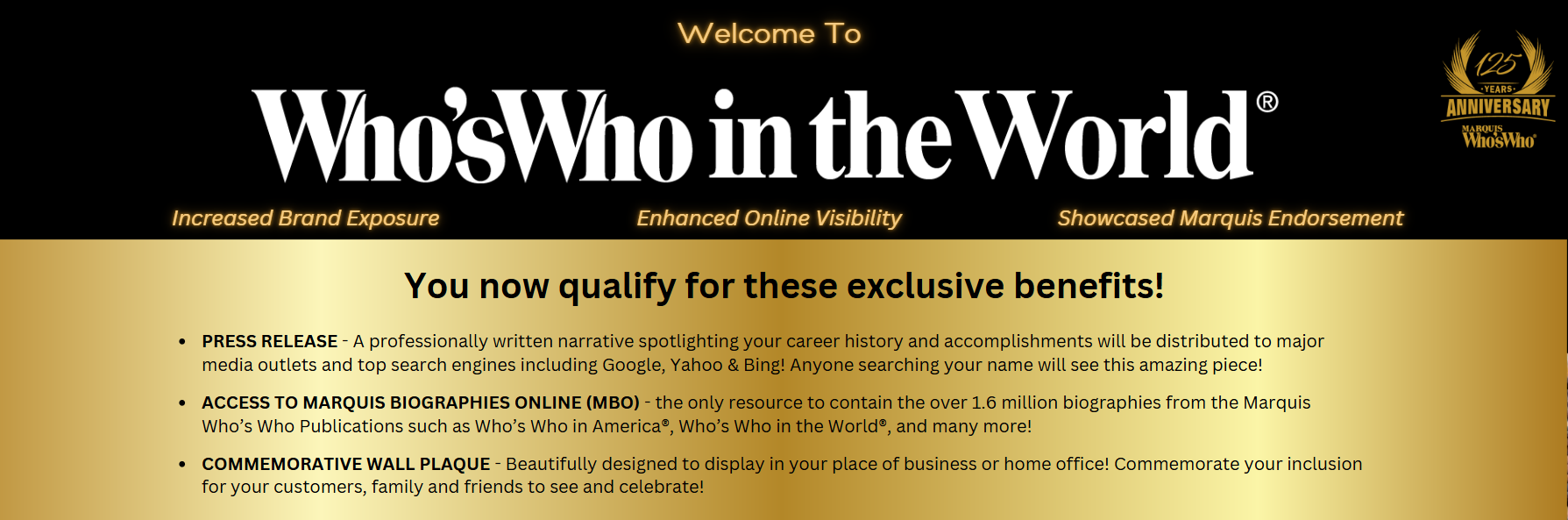 •MARQUIS BIOGRAPHIES ONLINE the only resource to contain the over 1.6 million biographies from the Marquis Who’s Who Publications such as Who’s Who in America®, Who’s Who in the World®, and many more! UPDATED DAILY!